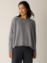 A simple shape with transformative texture. The crew neck top in fine Cashmere Fluff. Style No. F5CUF-W6221 DESIGN - Designed with a generous, boxy fit that drapes away from the body to create movement. - Kalyane is 5'10" and wears a size S, which measures 23 inches on the body. Size 1X measures 24 inches on the body. - Crew neck, drop shoulder. - This sweater is specially washed and brushed to achieve its unique texture, affecting the size and surface of each piece. Please note that fit may vary within the same size and color. - Style No. F5CUF-W6221 FABRIC - Fine cashmere that's specially washed to create uniquely fluffy texture. Ultrasoft, and ultraplush. - Dry clean only. May snag on jewelry. - Made in Cambodia. 100% Cashmere. SUSTAINABILITY - This fiber is certified to the Sustainable Fibre Alliance Cashmere Standard and is produced in a way that protects animal welfare and promotes safe working conditions.