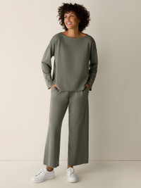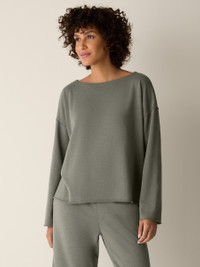 An elevated take on comfort. The bateau neck box-top in our soft and seasonless cotton terry. Style No. S6BBR-T6360 DESIGN - Designed with a generous, boxy fit that drapes away from the body to create movement. - Kalyane is 5'10" and wears a size S in Washed Black, which measures 24 inches on the body. Ryan is 5'8" and wears a size 1X, which measures 26 1/2 inches on the body. - Bateau neck, drop shoulder. - Style No. S6BBR-T6360 FABRIC - Structured yet relaxed. Our terry is made with 100% organic cotton and garment dyed for a lived-in look. - Machine wash cold. Tumble dry low. Color tranfer may occur. - Made in Vietnam. 100% Organic Cotton. SUSTAINABILITY - Organic farming supports clean water and healthy soil.