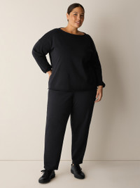 An elevated take on comfort. The bateau neck box-top in our soft and seasonless cotton terry. Style No. S6BBR-T6360 DESIGN - Designed with a generous, boxy fit that drapes away from the body to create movement. - Kalyane is 5'10" and wears a size S in Washed Black, which measures 24 inches on the body. Ryan is 5'8" and wears a size 1X, which measures 26 1/2 inches on the body. - Bateau neck, drop shoulder. - Style No. S6BBR-T6360 FABRIC - Structured yet relaxed. Our terry is made with 100% organic cotton and garment dyed for a lived-in look. - Machine wash cold. Tumble dry low. Color tranfer may occur. - Made in Vietnam. 100% Organic Cotton. SUSTAINABILITY - Organic farming supports clean water and healthy soil.