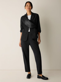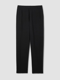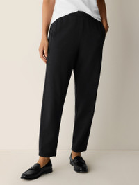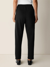 Just add slippers. Our "lazy pant," a relaxed silhouette made for lounging, in soft organic cotton terry. Style No. S6BBR-P4600 DESIGN - A slouchy silhouette with a longer rise and tapered ankle. Fits the body with ease. - Only available at select EILEEN FISHER stores. - Drew is 5'9" and wears a size XS in Eucalyptus. Ryan is 5'8" and wears a size 1X in Black. - 1-inch elastic waistband. - On-seam pockets, forward side seams. - Back darts for shape. - 11-inch rise; 28-inch inseam; 6 1/2-inch leg opening (size XS). 13 1/2-inch rise; 28-inch inseam; 8-inch leg opening (size 1X). - Style No. S6BBR-P4600 FABRIC - Structured yet relaxed. Our terry is made with 100% organic cotton and garment dyed for a lived-in look. - Machine wash cold. Tumble dry low. Color transfer may occur. - Made in Vietnam. 100% Organic Cotton. SUSTAINABILITY - Organic farming supports clean water and healthy soil.