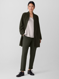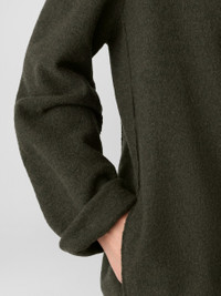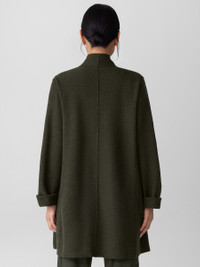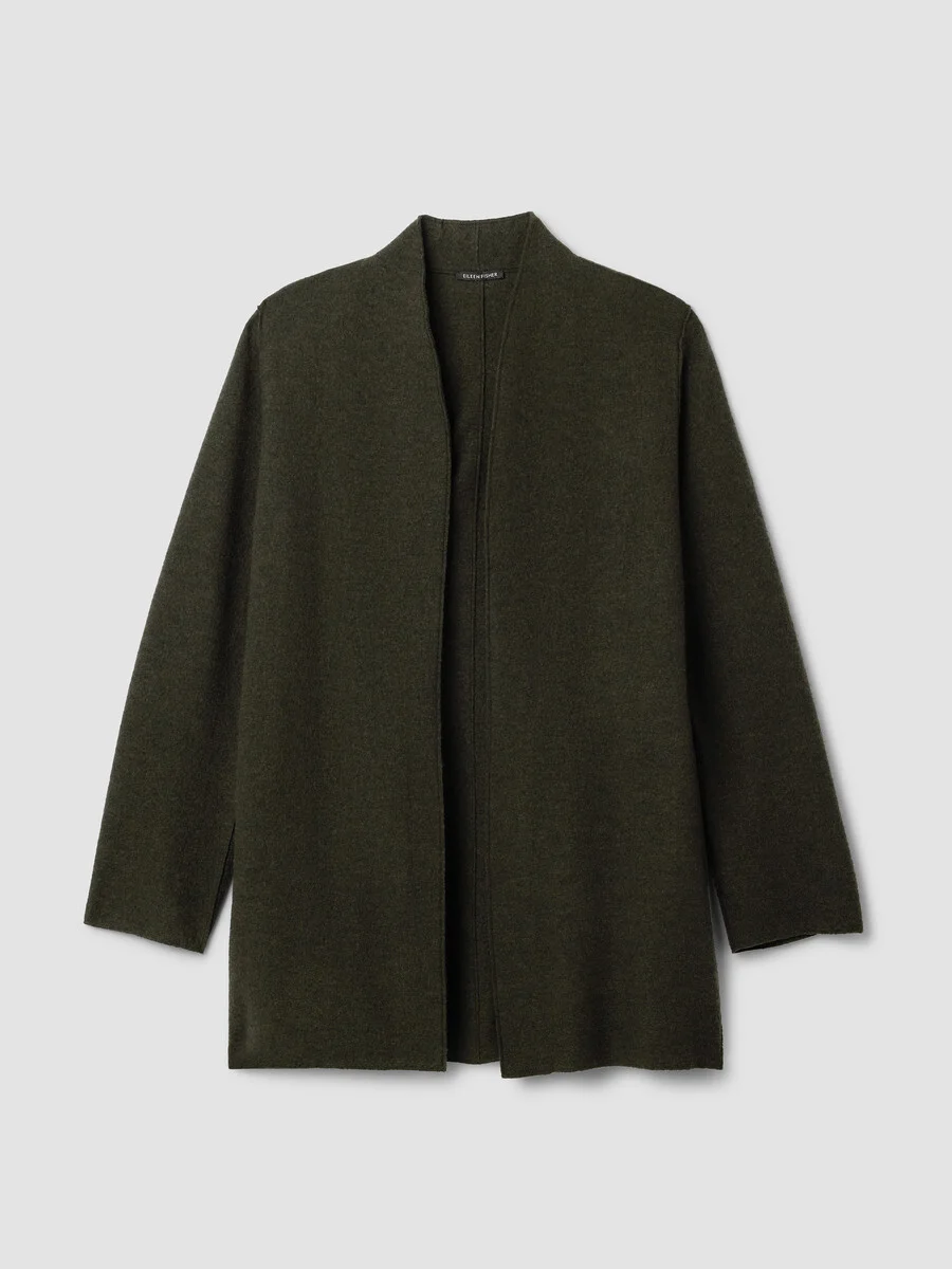 Relaxed and refined. The high collar jacket with an open front and pockets, in 100% Responsible Wool Standard certified wool. Style No. F5BWQ-J5821 DESIGN - Close at the shoulders, wider at the hem. A silhouette that fits the body with ease. - Select colors may vary by store. - Kalyane is 5'10" and wears a size S, which measures 33 inches on the body. Size 1X measures 34 1/2 inches on the body. - High collar, open front, on-seam pockets. - Center back seam. - Style No. F5BWQ-J5821 FABRIC - Our boiled wool with a soft, felted feel. The wool is not only responsibly sourced, it's helping to regenerate depleted grassland in Argentina with potential to sequester carbon and fight climate change. - Dry clean only. - Made in Vietnam. 100% Wool. SUSTAINABILITY - Our wool supports Argentinian ranchers who regenerate depleted grasslands through holistic farming methods while ensuring that better animal welfare practices are in place. - This fabric is bluesign® APPROVED. It's dyed with safer chemistry using less water and less energy, meeting the bluesign® CRITERIA.