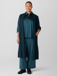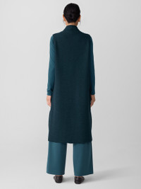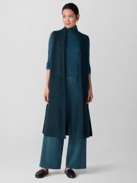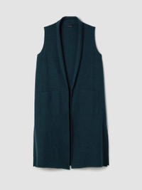 A warm layer with a touch of polish. The felted shawl collar vest with long lines and pockets, in 100% Responsible Wool Standard certified wool. Style No. F5BWQ-V1355 DESIGN - A generous, boxy fit that drapes away from the body to create movement. - Select colors may vary by store. - Kalyane is 5'10" and wears a size S, which measures 44 inches on the body. Size PS measures 40 inches on the body. Size 1X measures 45 1/2 inches on the body. - Shawl collar, sleeveless, open front. - Front patch pockets, 12-inch side slits. - Style No. F5BWQ-V1355 FABRIC - Our boiled wool with a soft, felted feel. The wool is not only responsibly sourced, it's helping to regenerate depleted grassland in Argentina with potential to sequester carbon and fight climate change. - Dry clean only. - Made in Vietnam. 100% Wool. SUSTAINABILITY - Our wool supports Argentinian ranchers who regenerate depleted grasslands through holistic farming methods while ensuring that better animal welfare practices are in place. - This fabric is bluesign® APPROVED. It's dyed with safer chemistry using less water and less energy, meeting the bluesign® CRITERIA.