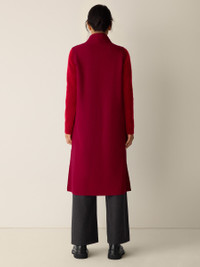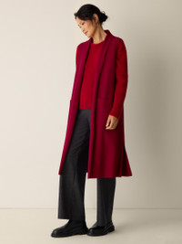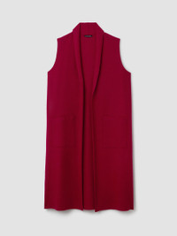 A warm layer with a touch of polish. The felted shawl collar vest with long lines and pockets, in 100% Responsible Wool Standard certified wool. Style No. F5BWQ-V1355 DESIGN - A generous, boxy fit that drapes away from the body to create movement. - Select colors may vary by store. - Kalyane is 5'10" and wears a size S, which measures 44 inches on the body. Size PS measures 40 inches on the body. Size 1X measures 45 1/2 inches on the body. - Shawl collar, sleeveless, open front. - Front patch pockets, 12-inch side slits. - Style No. F5BWQ-V1355 FABRIC - Our boiled wool with a soft, felted feel. The wool is not only responsibly sourced, it's helping to regenerate depleted grassland in Argentina with potential to sequester carbon and fight climate change. - Dry clean only. - Made in Vietnam. 100% Wool. SUSTAINABILITY - Our wool supports Argentinian ranchers who regenerate depleted grasslands through holistic farming methods while ensuring that better animal welfare practices are in place. - This fabric is bluesign® APPROVED. It's dyed with safer chemistry using less water and less energy, meeting the bluesign® CRITERIA.