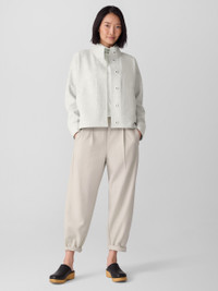 Any occasion, all season long. The stand collar jacket with a button front and pockets, in 100% Responsible Wool Standard certified wool. Style No. F5BWQ-J5810 DESIGN - Designed with a generous, boxy fit that drapes away from the body to create movement. - Select colors may vary by store. - Kalyane is 5'10" and wears a size S, which measures 25 inches on the body. Size 1X measures 27 1/2 inches on the body. - Stand collar, snap button front with button cuffs, drop shoulder. - Center back seam, welt pockets. - Style No. F5BWQ-J5810 FABRIC - Our boiled wool with a soft, felted feel. The wool is not only responsibly sourced, it's helping to regenerate depleted grassland in Argentina with potential to sequester carbon and fight climate change. - Dry clean only. - Made in Vietnam. 100% Wool. SUSTAINABILITY - Our wool supports Argentinian ranchers who regenerate depleted grasslands through holistic farming methods while ensuring that better animal welfare practices are in place. - This fabric is bluesign® APPROVED. It's dyed with safer chemistry using less water and less energy, meeting the bluesign® CRITERIA.