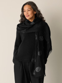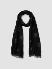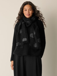 Ethereal elegance. A luxurious scarf you can also style as a wrap. In lightweight linen accented with shimmery texture. Style No. F5LAD-A0040 DESIGN - Generously sized to serve as a scarf or wrap. - 84 inches long by 20 inches wide, with 1-inch fringe. - Style No. F5LAD-A0040 - SKU: 198895048792 FABRIC - Airy linen accented with shimmery texture created by an intricate weaving technique called fil coupe. - Hand wash cold. Line dry. - Made in Italy. 93% Organic Linen/5% Viscose /1% Metallic/1% Poly. SUSTAINABILITY - Organic farming supports clean water and healthy soil.