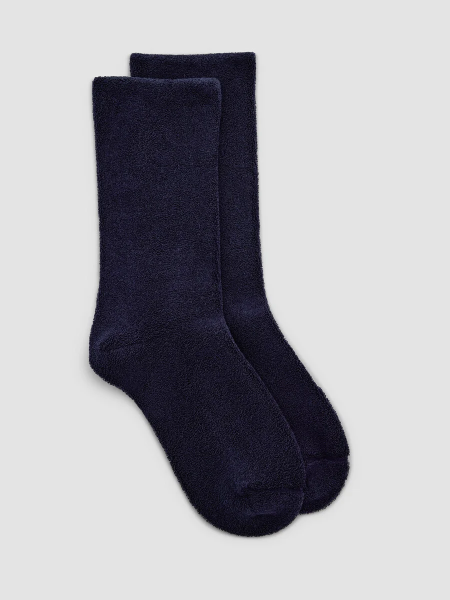 Soft and seasonless crew socks—perfect for lounging or wearing out. In our loopy organic cotton terry. Style No. S6DEU-L0322 DESIGN - Nonbinding cuff for comfort; finished with hand-linked toe seams. - One size fits women's shoe sizes 6-10. - Style No. S6DEU-L0322 - SKU: 198895184001 FABRIC - Relaxed organic cotton terry with loopy texture. - Machine wash cold. Lay flat to dry. - Made in Thailand. 81% Organic Cotton/17% Nylon/2% Spandex. SUSTAINABILITY - Organic farming supports clean water and healthy soil.