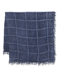 Maltinto scarf Highlights - Navy blue - Wraparound style - Rectangle shape - Frayed edge Made in Italy Composition Organic Cotton 77%, Organic Linen 23% SIZE & FIT Measurement LENGTH 24.4 in(62 cm) WIDTH 26.37 in(67 cm) Washing instructions Hand Wash