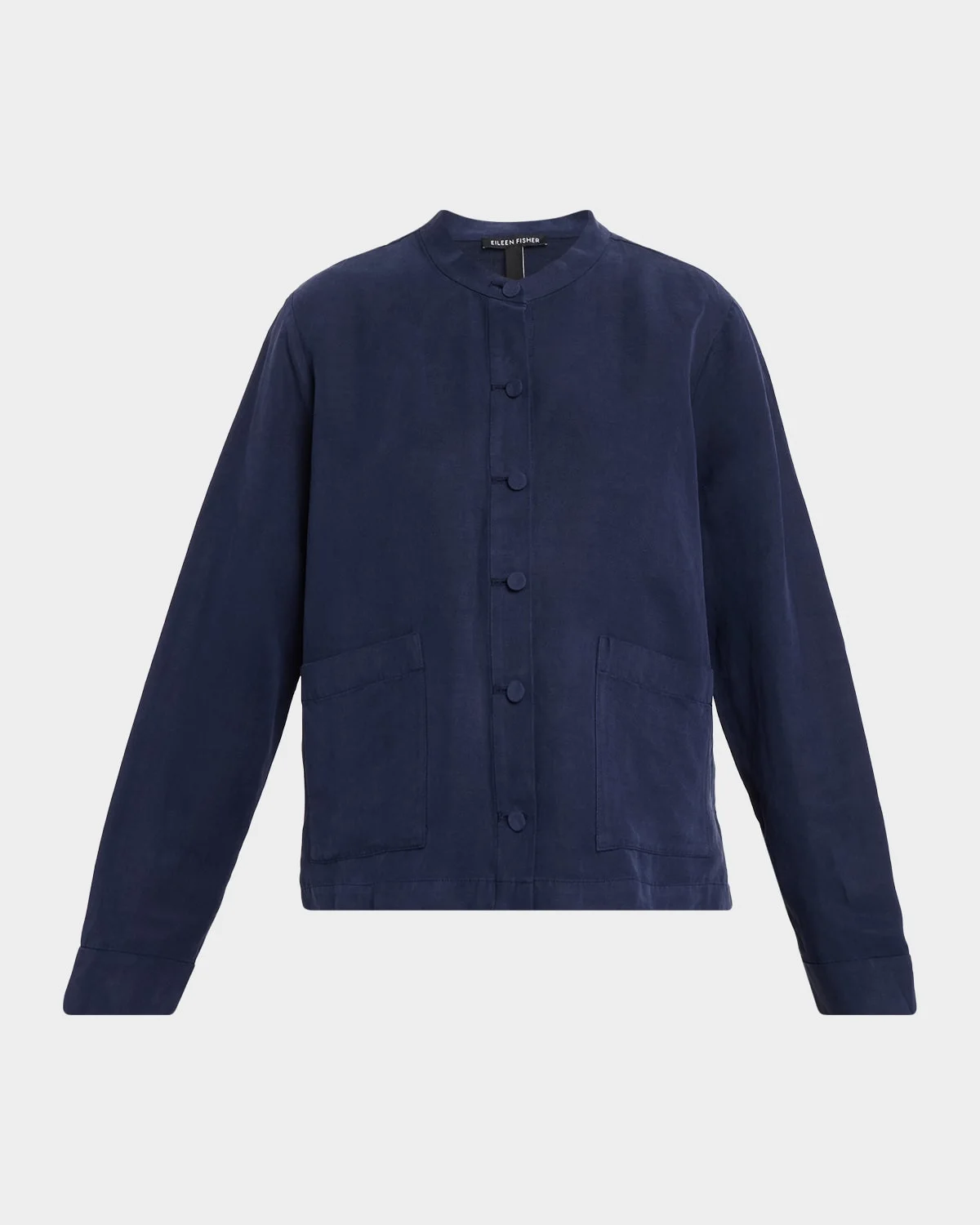 This linen-and-silk blend shirt from Eileen Fisher is designed with tonal buttons and pockets, creating a cohesive aesthetic. Mandarin collar Long sleeves Button front Lower patch pockets Button cuffs Standard fit Organic linen/silk Machine wash cold Imported SIZE & FITModel measurements: 5 & apos;10" tallModel is wearing a US size 4/Small