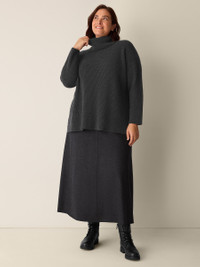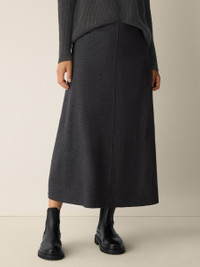 Any occasion, all season long. An easy silhouette that’s felted for softness and structure, now in a light wool jersey made with regenerative fiber. Made in a Fair Trade Certified™ factory. Style No. F5BQB-S4290 DESIGN - An A-line silhouette that’s wider at the hem. Fits the body with ease. - Kalyane is 5'10" and wears a size S, which measures 34 inches on the body. Haejin is 5'5" and wears a size PS, which measures 32 inches on the body. Size 1X measures 35 inches on the body. - 1-inch elastic waistband. - Back darts, side zipper entry. - Center front and back seams. - Style No. F5BQB-S4290 FABRIC - A melange-dyed version of our soft, smooth and lightweight wool jersey. This fiber is sourced from farms that use regenerative farming practices to promote soil health, biodiversity, water quality and emissions removal—and also support the communities where the wool is produced. - Dry clean only. - Made in Vietnam. 100% Virgin Wool. SUSTAINABILITY - Our Fair Trade Certified™ factories meet rigorous social and environmental standards. By choosing Fair Trade Certified™ products, you’re helping to improve the lives of workers, build resilient communities and protect the environment. - By sourcing ZQRX wool, EILEEN FISHER is part of a collective movement to support 500+ wool growers across New Zealand, Australia and South Africa transition toward a regenerative future.