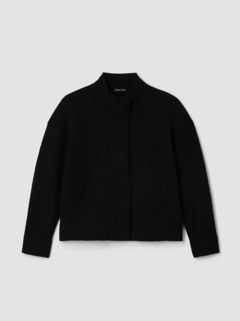 Any occasion, all season long. The stand collar jacket with a button front and pockets, in 100% Responsible Wool Standard certified wool. Style No. F5BWQ-J5810 DESIGN - Designed with a generous, boxy fit that drapes away from the body to create movement. - Select colors may vary by store. - Kalyane is 5'10" and wears a size S, which measures 25 inches on the body. Size 1X measures 27 1/2 inches on the body. - Stand collar, snap button front with button cuffs, drop shoulder. - Center back seam, welt pockets. - Style No. F5BWQ-J5810 FABRIC - Our boiled wool with a soft, felted feel. The wool is not only responsibly sourced, it's helping to regenerate depleted grassland in Argentina with potential to sequester carbon and fight climate change. - Dry clean only. - Made in Vietnam. 100% Wool. SUSTAINABILITY - Our wool supports Argentinian ranchers who regenerate depleted grasslands through holistic farming methods while ensuring that better animal welfare practices are in place. - This fabric is bluesign® APPROVED. It's dyed with safer chemistry using less water and less energy, meeting the bluesign® CRITERIA.