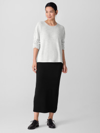 A classic silhouette defined by sweater-soft texture. The pencil skirt with a slim fit and easy elastic waistband, in soft merino made with regenerative fiber. Style No. F5MW-S4285 DESIGN - Fits close to the body—with stretch for maximum comfort. - Kalyane is 5'10" and wears a size S, which measures 34 inches on the body. Size 1X measures 35 inches on the body. - 1-inch elastic waistband. - Style No. F5MW-S4285 FABRIC - Our signature merino yarns, with the quality we've counted on for more than two decades. The wool is not only responsibly sourced, it's helping to regenerate depleted grassland in Argentina with potential to sequester carbon and fight climate change. - Hand wash cold. Reshape and lay flat to dry. May snag on jewelry. - Made in Cambodia. 100% Extra Fine Merino Wool. SUSTAINABILITY - Our wool supports Argentinian ranchers who regenerate depleted grasslands through holistic farming methods while ensuring that better animal welfare practices are in place.