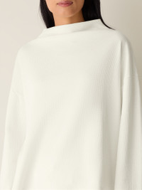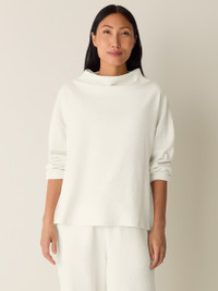 Elevated comfort. A cozy funnel neck top in a soft and breathable blend of cotton and Tencel™ Lyocell. Style No. F5WXA-T5758 DESIGN - A generous, boxy fit that drapes away from the body to create movement. - Select colors may vary by store. - Kalyane is 5'10" and wears a size S in Rye, which measures 25 inches on the body. Size 1X measures 27 1/2 inches on the body. - Funnel neck, drop shoulder, long sleeves. - 4-inch side slits. - Style No. F5WXA-T5758 FABRIC - A cozy doubleknit with waffle texture on the outside and a smooth surface on the inside. In a soft blend of cotton and Tencel™ Lyocell. - Machine wash cold. Line dry. - Made in Vietnam. 60% Organic Cotton/40% Tencel™ Lyocell. SUSTAINABILITY - Tencel™ Lyocell fiber is made from responsibly harvested trees.
