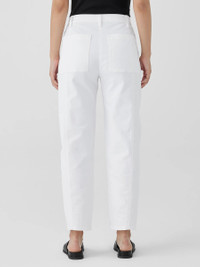Our best-selling ankle pant with a sculpted lantern shape and front pockets. In organic cotton denim dyed for rich color. Made in a Fair Trade Certified™ factory. Style No. S4GDD-P4715 DESIGN - Subtly curved through the leg, slightly tapered at the ankle. Fits the body withease. - Bo Bay is 5'9" and wears a size XS. - 1 1/2-inch waistband, fly front with zipper and button closure. - Side panel with on-seam pockets, back patch pockets. - 10 1/2-inch rise; 28-inch inseam; 7-inch leg opening (size XS). 10 1/2-inchrise; 26-inch inseam; 7-inch leg opening (size PS). 13-inch rise; 28-inchinseam; 8-inch leg opening (size 1X). - Style No. S4GDD-P4715 FABRIC - A classic-weight denim with a touch of stretch. We dye the whole garment so thatboth the thread and fabric acquire a deep, saturated color. - Machine wash cold. Do not dry clean. - Made in Indonesia. 98% Organic Cotton/2% Spandex. SUSTAINABILITY - Organic farming supports clean water and healthy soil. - Our Fair Trade Certified™ factories meet rigorous social and environmentalstandards. By choosing Fair Trade Certified™ products, you’re helping to improvethe lives of workers, build resilient communities and protect the environment.