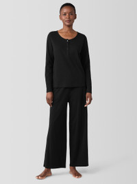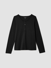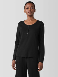 A relaxed top with a henley button closure—perfect for sleeping or lounging. Soft and drapey in organic Pima cotton that's grown using regenerative farming practices. Style No. SLANK-T942 DESIGN - Fits close to the body. Our slim fit is easier than the industry standard—withstretch for maximum comfort. - Only available online. - Flaviana is 5'9" and wears a size S, which measures 24 1/2 inches on the body.Size 1X measures 27 inches on the body. - Crew neck, long sleeves. - 4-button henley closure, river shell buttons. - Style No. SLANK-T942 FABRIC - Organic Pima cotton, doubleknit with interlocking stitches for body andstructure. Now grown using regenerative farming methods that focus on soilhealth and biodiversity. - Machine wash cold. Tumble dry low. - Made in Peru. 100% Organic Cotton. SUSTAINABILITY - Organic farming supports clean water and healthy soil.