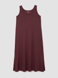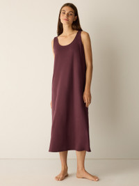 Relaxed and easy. The sleep dress with a scoop neck and side slits. Soft and drapey in organic Pima cotton that's grown using regenerative farming practices. Style No. SLAN2-G110 DESIGN - Close at the shoulders, wider at the hem. A silhouette that fits the body with ease. - Only available online. - Size S measures 49 1/2 inches on the body. - Scoop neck, sleeveless, 10-inch side slits. - Finished with banding at the neck. - Style No. SLAN2-G110 FABRIC - Organic Pima cotton, double knit with interlocking stitches for body and structure. We use fiber that's grown using regenerative farming methods that focus on soil health and biodiversity. - Made in Peru. SUSTAINABILITY - Organic farming supports clean water and healthy soil.