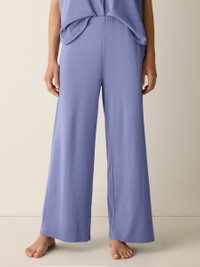 A lounge-worthy wide pant, perfect for sleeping or relaxing. Designed with versatility in mind—pair it with one of our matching tops or mix and match. In soft organic Pima cotton that's grown using regenerative farming practices. Style No. SLANK-B923 DESIGN - Slim through the hips, wider through the leg. Fits the body with ease. - Only available online. - 1-inch elastic waistband with drawstring, slash pockets. - 11 1/2-inch rise; 27-inch inseam; 12-inch leg opening (size S). 13 1/2-inch rise; 27-inch inseam; 13-inch leg opening (size 1X). - Style No. SLANK-B923 FABRIC - Organic Pima cotton, double knit with interlocking stitches for body and structure. We use fiber that's grown using regenerative farming methods that focus on soil health and biodiversity. - Machine wash cold. Tumble dry low. - Made in Peru. 100% Organic Cotton. SUSTAINABILITY - Organic farming supports clean water and healthy soil.