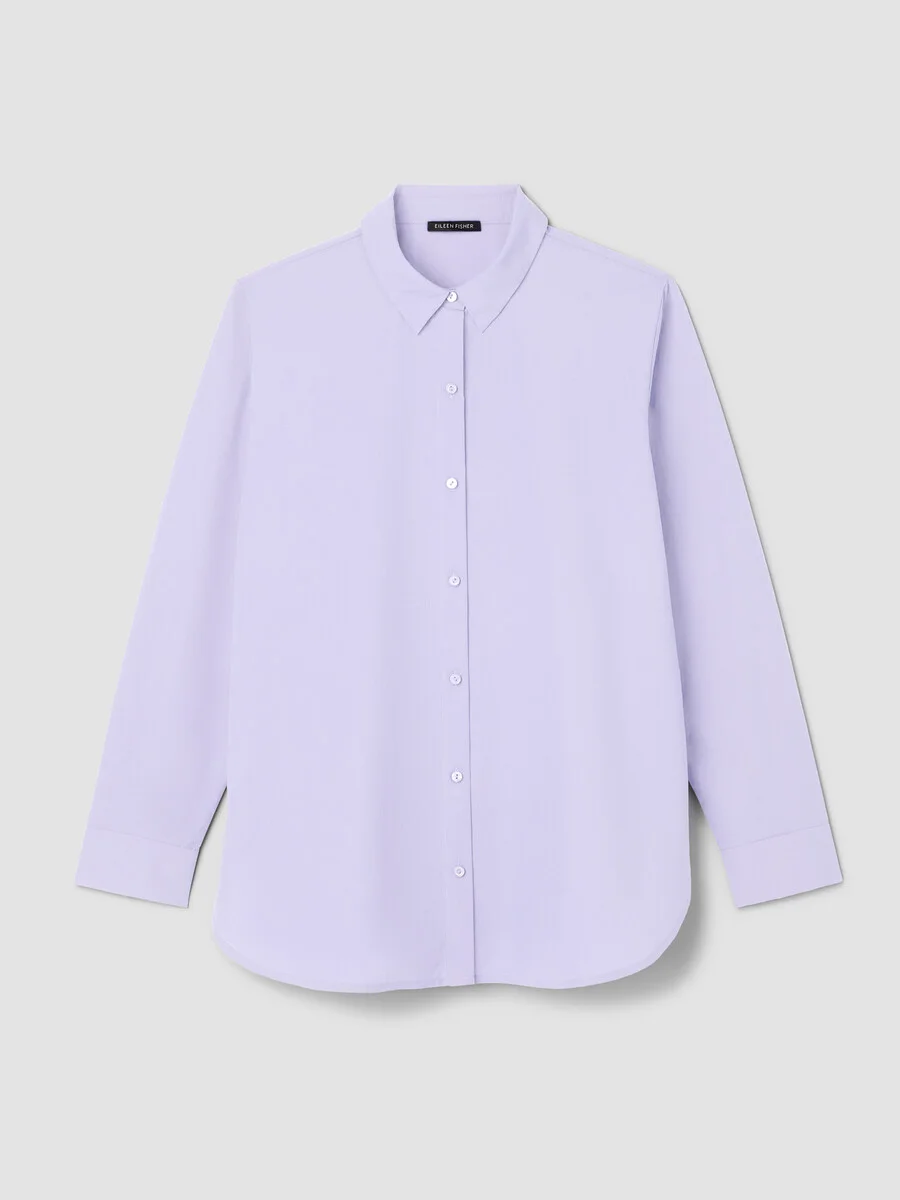 The classic collar shirt. A crisp staple with a curved hem, in smooth organic cotton. Buttoned up—but never stuffy. Made in a Fair Trade Certified™ factory. Style No. S6AJH-T6368 DESIGN - Close at the shoulders, wider at the hem. A silhouette that fits the body with ease. - White shirt only available online. - Kalyane is 5'10" and wears a size S in Airy Blue, which measures 30 inches on the body. Haejin is 5'5" and wears a size PS in Airy Blue, which measures 27 inches on the body. Ryan is 5'8" and wears a size 1X in White, which measures 32 1/2 inches on the body. - Classic collar, button front and button cuffs with double pleat. - Curved hem, back yoke with center box pleat. - River shell buttons. - Style No. S6AJH-T6368 FABRIC - Light and drapey. Fine organic cotton in a smooth, crisp weave. - Machine wash cold. Line dry. - Made in Indonesia. 100% Organic Cotton. SUSTAINABILITY - Our Fair Trade Certified™ factories meet rigorous social and environmental standards. By choosing Fair Trade Certified™ products, you’re helping to improve the lives of workers, build resilient communities and protect the environment. - Organic farming supports clean water and healthy soil.