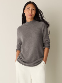 Cotton meets cashmere. A long turtleneck top that layers effortlessly, in a light and lofty blend of cotton and recycled cashmere. Style No. F5DFL-W6171 DESIGN - Close at the shoulders, wider at the hem. A silhouette that fits the body with ease. - Bo Bay is 5'9" and wears a size XS in Reed, which measures 28 inches on thebody. Size 1X measures 30 1/2 inches on the body. - Turtleneck, raglan sleeves. - Ribbed trim at the neck and cuffs. - Style No. F5DFL-W6171 FABRIC - Soft and luxurious. We added recycled cashmere to organic cotton for a lightweight knit that transitions between seasons. Our recycled cashmere reduces textile waste and has a lower eco footprint. - Machine wash cold, gentle cycle. Reshape and lay flat to dry. May snag on jewelry. - Made in Vietnam. 70% Organic Cotton/30% Recycled Cashmere. SUSTAINABILITY - Organic farming supports clean water and healthy soil. - Yarn spun with recycled cashmere, part of our commitment to changing the way clothes are made. - Yarn meets the Global Recycled Standard.