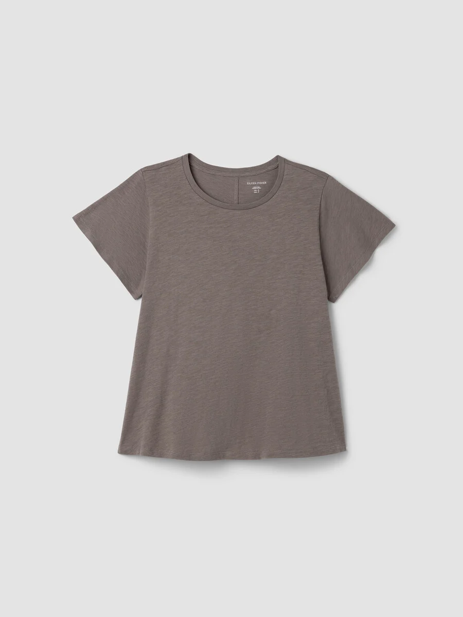 A simple staple. The crew neck tee you'll reach for again and again. Soft and relaxed in jersey that's made from regeneratively grown organic cotton fiber. Style No. S6SJP-T6512 DESIGN - Close at the shoulders, wider at the hem. A silhouette that fits the body with ease. - Field tee only available online. - Bo Bay is 5'9" and wears a size S in Black, which measures 25 inches on the body. Christina is 5'10" and wears a size 1X in Black, which measures 27 1/2 inches on the body. - Crew neck, cap sleeves. - Center back seam. - Style No. S6SJP-T6512 FABRIC - Soft and light, an organic cotton jersey with the visual texture that comes from a very fine slub yarn. We use fiber that's grown using regenerative farming methods that support soil health and biodiversity. Grown, spun, dyed and knit in Peru. - Machine wash cold. Tumble dry low. - Made in Peru. 100% Organic Cotton. SUSTAINABILITY - Organic farming supports clean water and healthy soil.