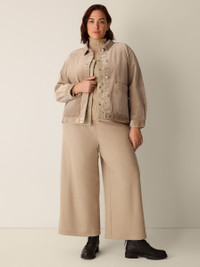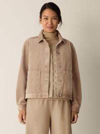 A relaxed jacket to take you from one season to the next. Designed with a classic collar and patch pockets, in velvety soft corduroy with a touch of stretch. Made in a Fair Trade Certified™ factory. Style No. F5TDC-J5814 DESIGN - Close at the shoulders, wider at the hem. A silhouette that fits the body with ease. - Only available at select EILEEN FISHER stores. - Kalyane is 5'10" and wears a size S, which measures 24 inches on the body. Size 1X measures 26 1/2 inches on the body. - Classic collar, button front and button cuffs with double pleat. - Patch pockets. - Style No. F5TDC-J5814 FABRIC - Our corduroy is velvety soft with fine rows of texture. We add a touch of stretch for comfort. - Machine wash cold. Turn inside out. Tumble dry low. - Made in Indonesia. 95% Organic Cotton/5% Spandex. SUSTAINABILITY - Our Fair Trade Certified™ factories meet rigorous social and environmental standards. By choosing Fair Trade Certified™ products, you’re helping to improve the lives of workers, build resilient communities and protect the environment. - Organic farming supports clean water and healthy soil.