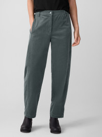 The lantern pant. A shape that feels modern all over again, in our soft and drapey organic cotton corduroy. Made in a Fair Trade Certified™ factory. Style No. F5TDC-P4881 DESIGN - Subtly curved through the leg, slightly tapered at the ankle. Fits the body with ease. - Black pant only available online. - Kalyane is 5'10" and wears a size S. - 2-inch elastic waistband, fly front with zipper and button closure. - Belt loops, front on-seam pockets, back patch pockets. - Side panel details, back darts for shape. - 11-inch rise; 28-inch inseam; 7 1/2-inch leg opening (size S). 10 1/2-inch rise; 26-inch inseam; 7-inch leg opening (size PS). 13-inch rise; 28-inch inseam; 8 1/2 inch leg opening (size 1X). - Style No. F5TDC-P4881 FABRIC - Our corduroy is velvety soft with fine rows of texture. We add a touch of stretch for comfort. - Machine wash cold. Turn inside out. Tumble dry low. - Made in Indonesia. 95% Organic Cotton/5% Spandex. SUSTAINABILITY - Our Fair Trade Certified™ factories meet rigorous social and environmental standards. By choosing Fair Trade Certified™ products, you’re helping to improve the lives of workers, build resilient communities and protect the environment. - Organic farming supports clean water and healthy soil.