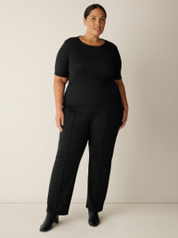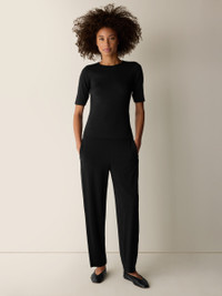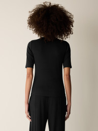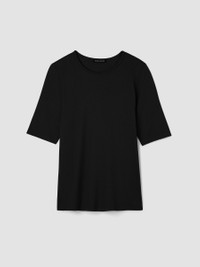 Simple and effortless. The crew neck tee with elbow sleeves, in organic cotton with subtly ribbed texture. Style No. S6XJU-T6189 DESIGN - Fits close to the body. Our slim fit is easier than the industry standard—withstretch for maximum comfort. - Select colors may vary by store. Black and White tops only available online. - Drew is 5'9" and wears a size XS in Black, which measures 24 inches on thebody. - Crew neck, elbow sleeves. - Style No. S6XJU-T6189 FABRIC - A fine, two-by-two rib with softness and stretch. For basics withsophistication. We use fiber that's grown using regenerative farming methodsthat support soil health and biodiversity. - Machine wash cold. Tumble dry low. - Made in Peru. 100% Organic Cotton. SUSTAINABILITY - Organic farming supports clean water and healthy soil.