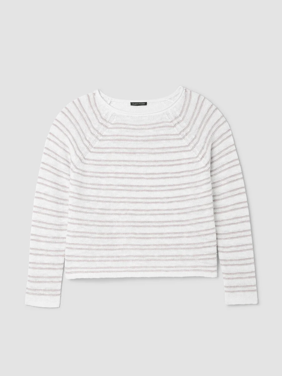 Soft and simple. The bateau neck top in a blend of organic linen and cotton with horizontal rows of texture. Style No. S6LEO-W6285 DESIGN - Close at the shoulders, wider at the hem. A silhouette that fits the body with ease. - Ravyanshi is 5'8" and wears a size XS in Breeze, which measures 23 inches on the body. Christina is 5'10" and wears a size 1X in Breeze, which measures 25 1/2 inches on the body. - Bateau neck, raglan seams. - Rolled edge at the neck. - May snag on jewelry. Wear with care. - Style No. S6LEO-W6285 FABRIC - Cool and light. A slubby blend of organic linen and cotton with the added dimension of a textural stripe. - Machine wash cold. Reshape and lay flat to dry. May snag on jewelry. - Made in Vietnam. 56% Organic Linen/44% Organic Cotton. SUSTAINABILITY - Organic farming supports clean water and healthy soil.