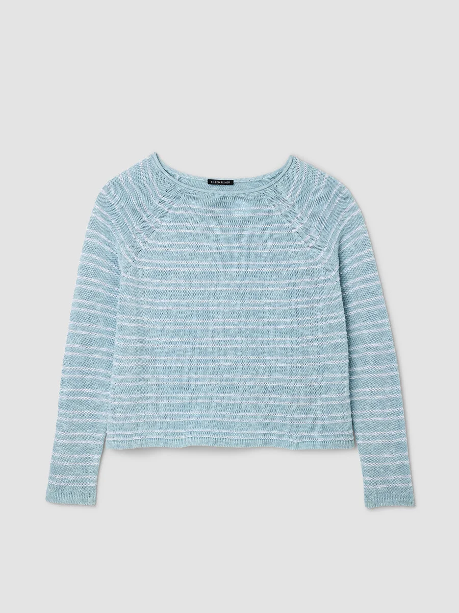 Soft and simple. The bateau neck top in a blend of organic linen and cotton with horizontal rows of texture. Style No. S6LEO-W6285 DESIGN - Close at the shoulders, wider at the hem. A silhouette that fits the body with ease. - Ravyanshi is 5'8" and wears a size XS in Breeze, which measures 23 inches on the body. Christina is 5'10" and wears a size 1X in Breeze, which measures 25 1/2 inches on the body. - Bateau neck, raglan seams. - Rolled edge at the neck. - May snag on jewelry. Wear with care. - Style No. S6LEO-W6285 FABRIC - Cool and light. A slubby blend of organic linen and cotton with the added dimension of a textural stripe. - Machine wash cold. Reshape and lay flat to dry. May snag on jewelry. - Made in Vietnam. 56% Organic Linen/44% Organic Cotton. SUSTAINABILITY - Organic farming supports clean water and healthy soil.