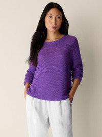 A classic shape set apart by soft, subtle texture. The crew neck top, in fine organic cotton now grown using regenerative farming methods. Style No. S6LEL-W5971 DESIGN - Close at the shoulders, wider at the hem. A silhouette that fits the body with ease. - Ravyanshi is 5'8" and wears a size S in Lilac Frost, which measures 22 1/2 inches on the body. Size 1X measures 25 inches on the body. - Crew neck. - Finished with ribbed trim at the neck. - Style No. S6LEL-W5971 FABRIC - A textural knit that transforms simple shapes. In a slubby blend of organic cotton and organic linen that feels cool and light. - Machine wash cold. Reshape and lay flat to dry. May snag on jewelry. - May snag on jewelry. Wear with care. - Made in Vietnam. 56% Organic Linen/44% Organic Cotton. SUSTAINABILITY - Organic farming supports clean water and healthy soil.