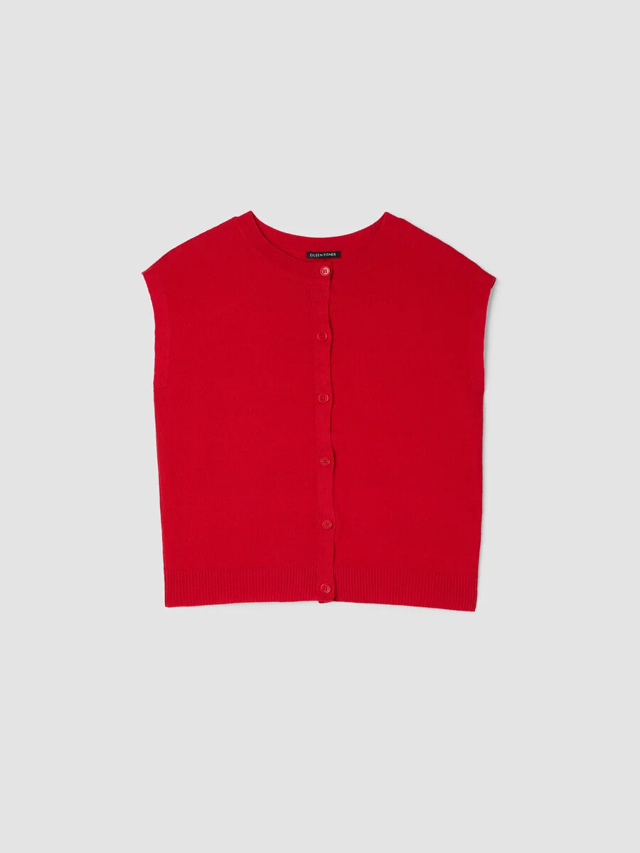 Part vest, part cardigan. The crew neck vest with a button front—wear it alone or over a tank. In a textural blend of organic linen and organic cotton. Style No. S5FVF-V1338 DESIGN - A generous, boxy fit that drapes away from the body to create movement. - Select colors may vary by store. - Polina is 5'10" and wears a size XS, which measures 22 1/2 inches on the body.Haejin is 5'5" and wears a size PS, which measures 22 inches on the body. Size1X measures 25 1/2 inches on the body. - Crew neck, button front, cap sleeves. - Corozo buttons. - Finished with ribbed trim at the hem. - Style No. S5FVF-V1338 FABRIC - When textural organic linen is knit with soft organic cotton, something specialhappens. A yarn with body, movement and versatility. Dress it up—or dress itdown. - Hand wash cold. Do not wring. Gently squeeze or roll in towel to remove excess moisture. Reshape and lay flat to dry. - Made in Hong Kong. 68% Organic Linen/32% Organic Cotton. SUSTAINABILITY - Organic farming supports clean water and healthy soil.