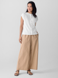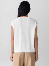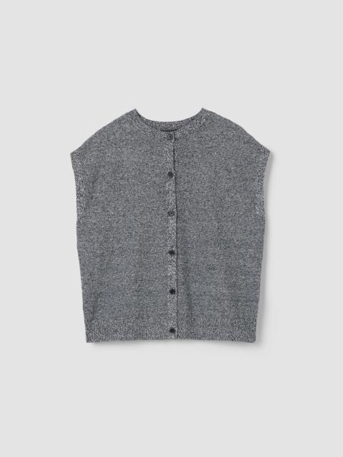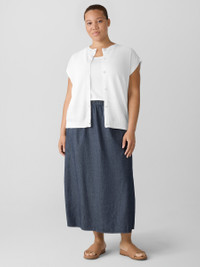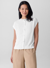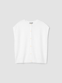 Part vest, part cardigan. The crew neck vest with a button front—wear it alone or over a tank. In a textural blend of organic linen and organic cotton. Style No. S5FVF-V1338 DESIGN - A generous, boxy fit that drapes away from the body to create movement. - Select colors may vary by store. - Polina is 5'10" and wears a size XS, which measures 22 1/2 inches on the body.Haejin is 5'5" and wears a size PS, which measures 22 inches on the body. Size1X measures 25 1/2 inches on the body. - Crew neck, button front, cap sleeves. - Corozo buttons. - Finished with ribbed trim at the hem. - Style No. S5FVF-V1338 FABRIC - When textural organic linen is knit with soft organic cotton, something specialhappens. A yarn with body, movement and versatility. Dress it up—or dress itdown. - Hand wash cold. Do not wring. Gently squeeze or roll in towel to remove excess moisture. Reshape and lay flat to dry. - Made in Hong Kong. 68% Organic Linen/32% Organic Cotton. SUSTAINABILITY - Organic farming supports clean water and healthy soil.