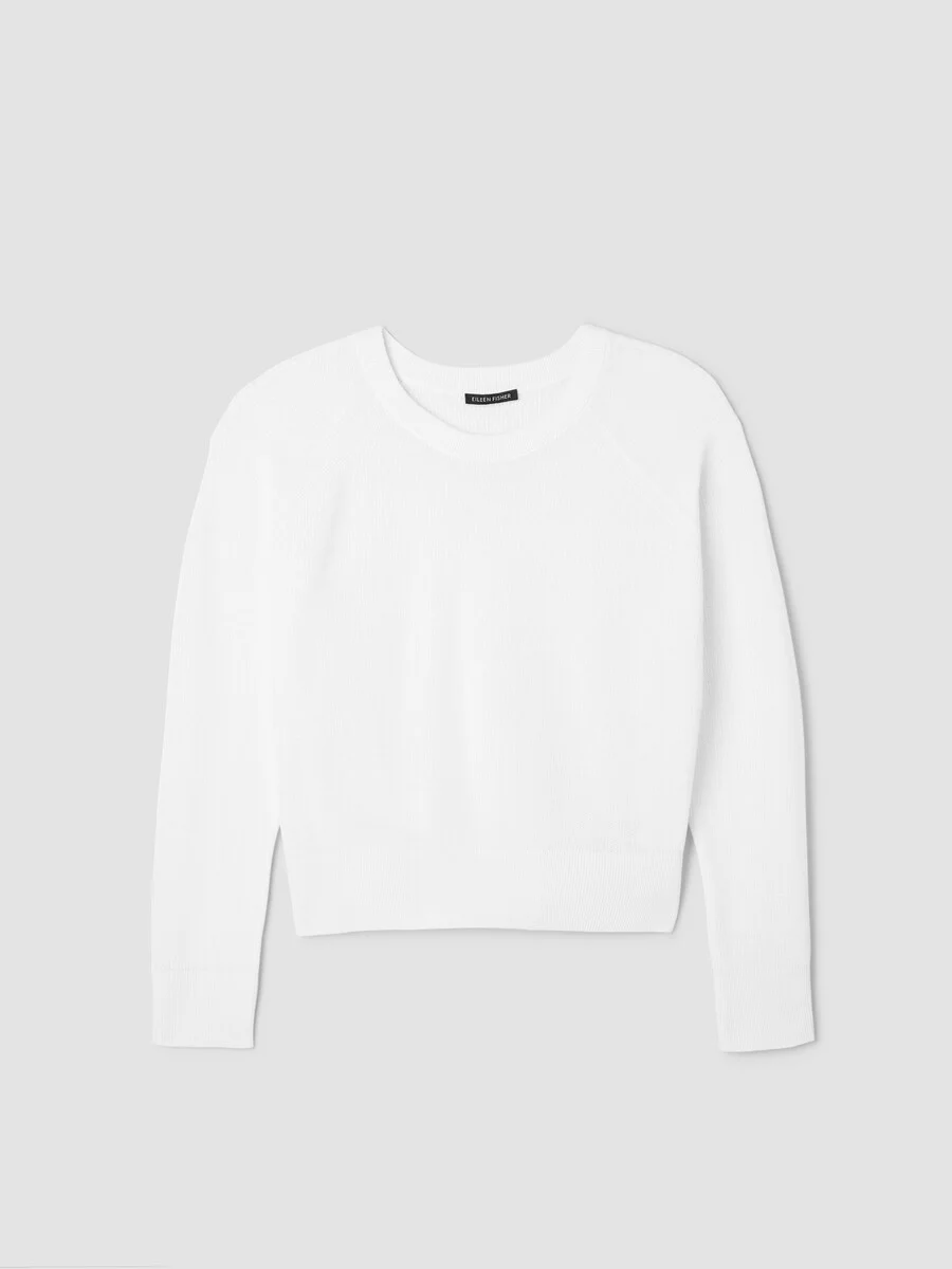 The wedge sweater. A simple silhouette that tapers slightly at the waist, in a textural knit made from organic linen and cotton. Style No. S6FWA-W6277 DESIGN - A generous, boxy fit that drapes away from the body to create movement. - Black sweater only available online and in our LAB stores. - Ravyanshi is 5'8" and wears a size XS in Breeze, which measures 22 inches on the body. Christina is 5'10" and wears a size 1X in Undyed Natural, which measures 24 1/2 inches on the body. - Crew neck, raglan seams. - Finished with ribbed trim at the cuffs and hem. - Style No. S6FWA-W6277 FABRIC - When textural organic linen is knit with soft organic cotton, something special happens. A yarn with body, movement and versatility. Dress it up—or dress it down. - Hand wash cold. Reshape and lay flat to dry. May snag on jewelry. - Made in Vietnam. 68% Organic Linen/32% Organic Cotton. SUSTAINABILITY - Organic farming supports clean water and healthy soil.