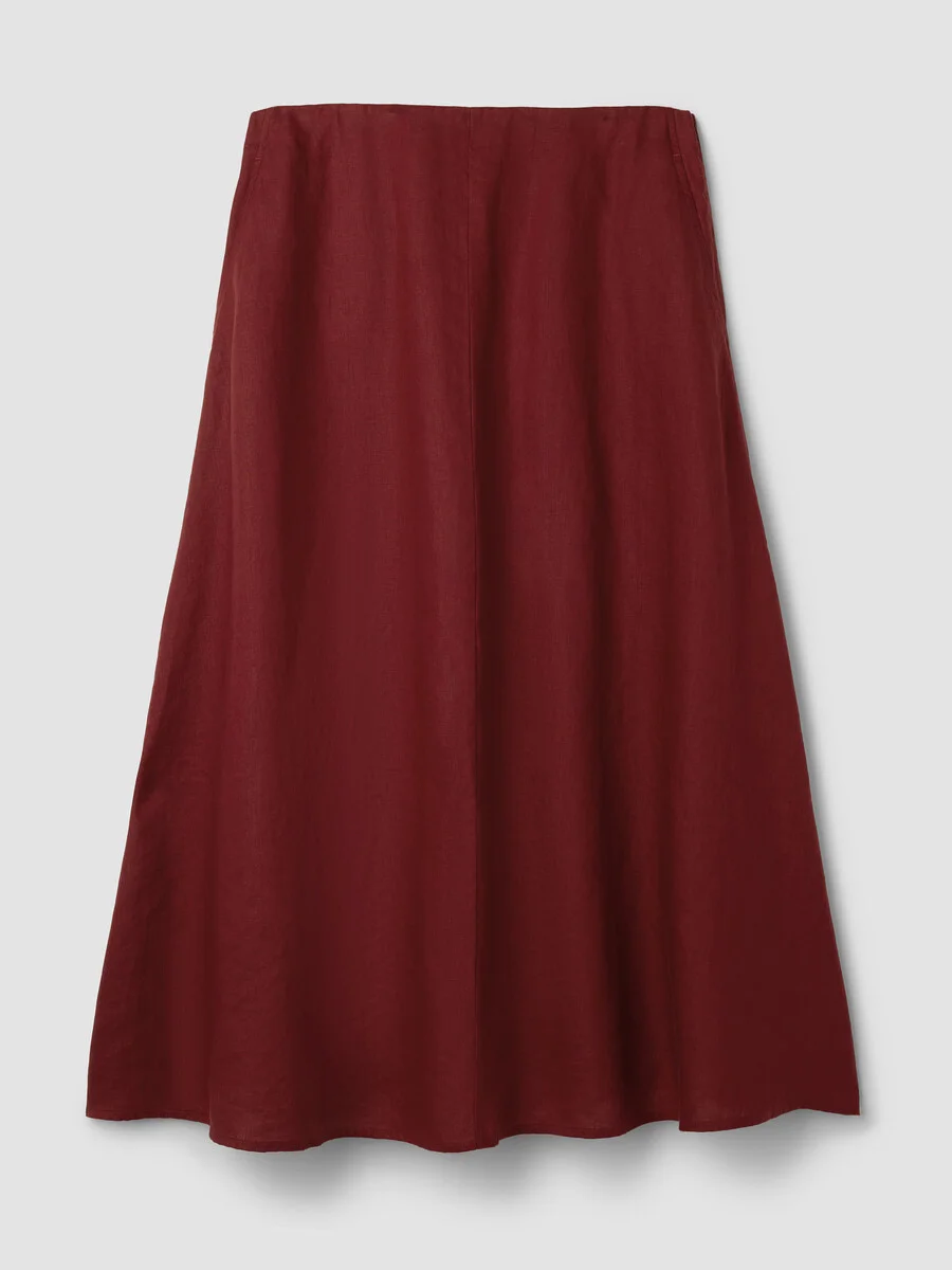 Not too heavy, not too light. A drapey skirt to elevate any look, in our signature Organic Linen. Style No. S6RII-S4421 DESIGN - An easy fit with extra volume—and movement. - Sarah is 5'7" and wears a size XS in Black, which measures 35 inches on the body. Nina is 5'3" and wears a size PS in Undyed Natural, which measures 32 inches on the body. Christina is 5'10" and wears a size 1X in Undyed Natural, which measures 36 inches on the body. - 1-inch elastic waist, side zip closure. - Front slash pockets. - Style No. S6RII-S4421 FABRIC - Our medium-weight organic linen—natural texture with a relaxed feel. Loved since 2008. - Machine wash cold. Line dry. Color transfer may occur. Do not dry clean. - Made in Vietnam. 100% Organic Linen. SUSTAINABILITY - Organic farming supports clean water and healthy soil. - This fabric is bluesign® APPROVED. It's dyed with safer chemistry using less water and less energy, meeting the bluesign® CRITERIA.
