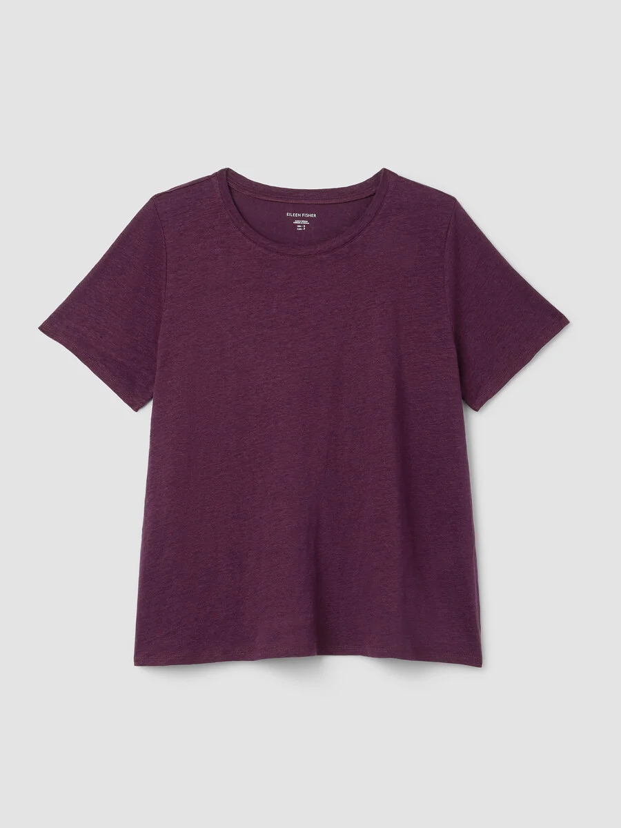 An effortless staple. The crew neck tee with short sleeves and banding at the neckline. In our signature Organic Linen Jersey, lightweight with subtle texture. Made in a Fair Trade Certified™ factory. Style No. S5IZ1-T5852 DESIGN - Close at the shoulders, wider at the hem. A silhouette that fits the body withease. - Flaviana is 5'9" and wears a size S, which measures 25 inches on the body. Size1X measures 27 1/2 inches on the body. - Crew neck, short sleeves. - Finished with banding at the neck. - Style No. S5IZ1-T5852 FABRIC - The natural texture of linen in a breezy knit that's casual yet sophisticated. - Machine wash cold. Tumble dry low. - Made in Vietnam. 100% Organic Linen. SUSTAINABILITY - Our Fair Trade Certified™ factories meet rigorous social and environmentalstandards. By choosing Fair Trade Certified™ products, you’re helping to improvethe lives of workers, build resilient communities and protect the environment. - Organic farming supports clean water and healthy soil. - This fabric is bluesign® APPROVED. It's dyed with safer chemistry using lesswater and less energy, meeting the bluesign® CRITERIA.