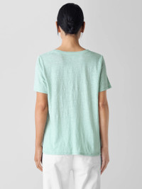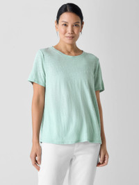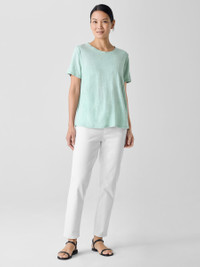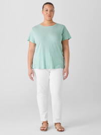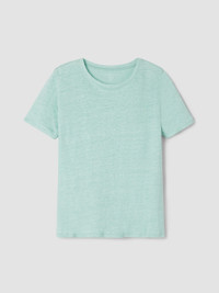 An effortless staple. The crew neck tee with short sleeves and banding at the neckline. In our signature Organic Linen Jersey, lightweight with subtle texture. Made in a Fair Trade Certified™ factory. Style No. S5IZ1-T5852 DESIGN - Close at the shoulders, wider at the hem. A silhouette that fits the body withease. - Flaviana is 5'9" and wears a size S, which measures 25 inches on the body. Size1X measures 27 1/2 inches on the body. - Crew neck, short sleeves. - Finished with banding at the neck. - Style No. S5IZ1-T5852 FABRIC - The natural texture of linen in a breezy knit that's casual yet sophisticated. - Machine wash cold. Tumble dry low. - Made in Vietnam. 100% Organic Linen. SUSTAINABILITY - Our Fair Trade Certified™ factories meet rigorous social and environmentalstandards. By choosing Fair Trade Certified™ products, you’re helping to improvethe lives of workers, build resilient communities and protect the environment. - Organic farming supports clean water and healthy soil. - This fabric is bluesign® APPROVED. It's dyed with safer chemistry using lesswater and less energy, meeting the bluesign® CRITERIA.