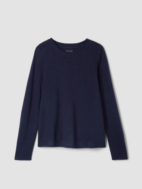 An elevated basic with a crew neck and long sleeves. In our signature Organic Linen Jersey, lightweight with subtle texture. Made in a Fair Trade Certified™ factory. Style No. S6IZ1-T5670 DESIGN - Close at the shoulders, wider at the hem. A silhouette that fits the body withease. - Astrid is 5'9" and wears a size S in River, which measures 24 1/2 inches on thebody. Haejin is 5'5" and wears a size PS, which measures 24 inches on the body.Ryan is 5'8" and wears a size 1X, which measures 27 1/2 inches on the body. - Crew neck, long sleeves. - Finished with banding at the neck. - Style No. S6IZ1-T5670 FABRIC - The natural texture of linen in a breezy knit that's casual yet sophisticated. - Machine wash cold. Tumble dry low. - Made in Vietnam. 100% Organic Linen. SUSTAINABILITY - Our Fair Trade Certified™ factories meet rigorous social and environmentalstandards. By choosing Fair Trade Certified™ products, you’re helping to improvethe lives of workers, build resilient communities and protect the environment. - Organic farming supports clean water and healthy soil. - This fabric is bluesign® APPROVED. It's dyed with safer chemistry using lesswater and less energy, meeting the bluesign® CRITERIA.