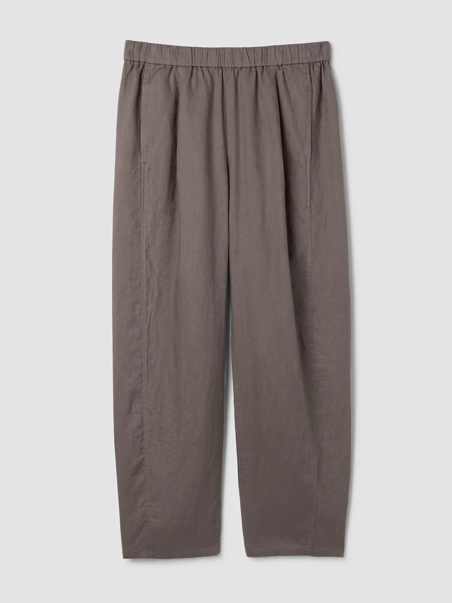 The lantern pant. A shape that feels modern all over again, in our signature Organic Linen. Style No. S6RII-P4794 DESIGN - Subtly curved through the leg, slightly tapered at the ankle. Fits the body with ease. - Kalyane is 5'10" and wears a size S in Ink. - 1 1/2-inch elastic waistband, 1-inch-deep front pleats. - Side panel detail, on-seam pockets. - 11-inch rise; 28-inch inseam; 7 1/2-inch leg opening (size S). 11-inch rise; 26-inch inseam; 7-inch leg opening (size PS). 13-inch rise; 28-inch inseam; 8 1/2-inch leg opening (size 1X). - Style No. S6RII-P4794 FABRIC - Our medium-weight organic linen—natural texture with a relaxed feel. Loved since 2008. - Machine wash cold. Line dry. Color transfer may occur. Do not dry clean. - Made in Vietnam. 100% Organic Linen. SUSTAINABILITY - Organic farming supports clean water and healthy soil. - This fabric is bluesign® APPROVED. It's dyed with safer chemistry using less water and less energy, meeting the bluesign® CRITERIA.