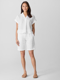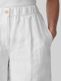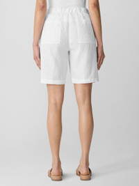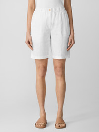 A warm-weather staple. Easy shorts designed with a fly front closure and pockets. In our signature Organic Linen—not too heavy, not too light. Made in a Fair Trade Certified™ factory. Style No. S5RII-P4796 DESIGN - Straight through the leg. Fits the body with ease. - Select colors may vary by store. - Bo Bay is 5'9" and wears a size XS. - 1 1/2-inch elastic waistband, zipper fly front with corozo button closure. - Front slash pockets, back patch pockets. - 1-inch-deep front pleats, back darts for shape. - 11-inch rise; 9-inch inseam; 11-inch leg opening (size XS). 13-inch rise; 9-inch inseam; 13-inch leg opening (size 1X). - Style No. S5RII-P4796 FABRIC - Our medium-weight organic linen—natural texture with a relaxed feel. Loved since 2008. - Machine wash cold, gentle cycle. Line dry. Do not dry clean. - Made in Vietnam. 100% Organic Linen. SUSTAINABILITY - Our Fair Trade Certified™ factories meet rigorous social and environmental standards. By choosing Fair Trade Certified™ products, you’re helping to improve the lives of workers, build resilient communities and protect the environment. - Organic farming supports clean water and healthy soil. - This fabric is bluesign® APPROVED. It's dyed with safer chemistry using less water and less energy, meeting the bluesign® CRITERIA.
