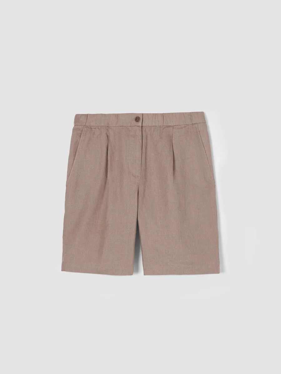 A warm-weather staple. Easy shorts designed with a fly front closure and pockets. In our signature Organic Linen—not too heavy, not too light. Made in a Fair Trade Certified™ factory. Style No. S5RII-P4796 DESIGN - Straight through the leg. Fits the body with ease. - Select colors may vary by store. - Bo Bay is 5'9" and wears a size XS. - 1 1/2-inch elastic waistband, zipper fly front with corozo button closure. - Front slash pockets, back patch pockets. - 1-inch-deep front pleats, back darts for shape. - 11-inch rise; 9-inch inseam; 11-inch leg opening (size XS). 13-inch rise; 9-inch inseam; 13-inch leg opening (size 1X). - Style No. S5RII-P4796 FABRIC - Our medium-weight organic linen—natural texture with a relaxed feel. Loved since 2008. - Machine wash cold, gentle cycle. Line dry. Do not dry clean. - Made in Vietnam. 100% Organic Linen. SUSTAINABILITY - Our Fair Trade Certified™ factories meet rigorous social and environmental standards. By choosing Fair Trade Certified™ products, you’re helping to improve the lives of workers, build resilient communities and protect the environment. - Organic farming supports clean water and healthy soil. - This fabric is bluesign® APPROVED. It's dyed with safer chemistry using less water and less energy, meeting the bluesign® CRITERIA.