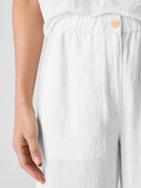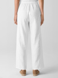 The wide-leg pant—an effortless essential updated with a fly front closure. In our signature Organic Linen that's not too heavy, not too light. Made in a Fair Trade Certified™ factory. Style No. S5RII-P4701 DESIGN - Slim through the hips, wider through the leg. Fits the body with ease. - Bo Bay is 5'9" and wears a size XS. Haejin is 5'5" and wears a size PS. - 1 1/2-inch elastic waistband, zipper fly front with corozo button closure. - On-seam pockets. - 11-inch rise; 28 1/2-inch inseam; 11-inch leg opening (size XS). 11-inch rise; 26 1/2-inch inseam; 10-inch leg opening (size PS). 13-inch rise; 28 1/2-inch inseam; 12-inch leg opening (size 1X). - Style No. S5RII-P4701 FABRIC - Our medium-weight organic linen—natural texture with a relaxed feel. Loved since 2008. - Machine wash cold, gentle cycle. Line dry. Do not dry clean. - Made in Vietnam. 100% Organic Linen. SUSTAINABILITY - Our Fair Trade Certified™ factories meet rigorous social and environmental standards. By choosing Fair Trade Certified™ products, you’re helping to improve the lives of workers, build resilient communities and protect the environment. - Organic farming supports clean water and healthy soil. - This fabric is bluesign® APPROVED. It's dyed with safer chemistry using less water and less energy, meeting the bluesign® CRITERIA.