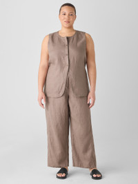 The wide-leg pant—an effortless essential updated with a fly front closure. In our signature Organic Linen that's not too heavy, not too light. Made in a Fair Trade Certified™ factory. Style No. S5RII-P4701 DESIGN - Slim through the hips, wider through the leg. Fits the body with ease. - Bo Bay is 5'9" and wears a size XS. Haejin is 5'5" and wears a size PS. - 1 1/2-inch elastic waistband, zipper fly front with corozo button closure. - On-seam pockets. - 11-inch rise; 28 1/2-inch inseam; 11-inch leg opening (size XS). 11-inch rise; 26 1/2-inch inseam; 10-inch leg opening (size PS). 13-inch rise; 28 1/2-inch inseam; 12-inch leg opening (size 1X). - Style No. S5RII-P4701 FABRIC - Our medium-weight organic linen—natural texture with a relaxed feel. Loved since 2008. - Machine wash cold, gentle cycle. Line dry. Do not dry clean. - Made in Vietnam. 100% Organic Linen. SUSTAINABILITY - Our Fair Trade Certified™ factories meet rigorous social and environmental standards. By choosing Fair Trade Certified™ products, you’re helping to improve the lives of workers, build resilient communities and protect the environment. - Organic farming supports clean water and healthy soil. - This fabric is bluesign® APPROVED. It's dyed with safer chemistry using less water and less energy, meeting the bluesign® CRITERIA.