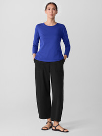 The round neck tee. An elevated basic, now with 3/4 sleeves. Made from soft organic Pima cotton that's grown using regenerative farming methods. Style No. F5KRS-T6387 DESIGN - Close at the shoulder, wider at the hem. For an even easier fit, size up. - Size S measures 25 inches on the body. Size 1X measures 27 1/2 inches on the body. - Round neck, 3/4 sleeves. - Finished with banding at the neck. - Style No. F5KRS-T6387 FABRIC - A jersey knit with the smoothness and luster that come from a luxurious fiber—extra-long staple organic cotton. Now grown using regenerative farming methods that focus on soil health and biodiversity. Grown, spun, dyed and knit in Peru. - Machine wash cold. Lay flat to dry. Do not dry clean. - Made in Peru. 100% Organic Cotton. SUSTAINABILITY - Organic farming supports clean water and healthy soil.