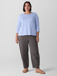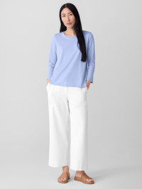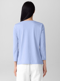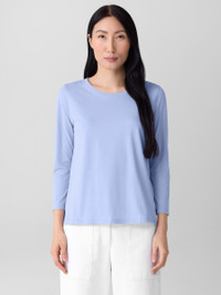 The round neck tee. An elevated basic, now with 3/4 sleeves. Made from soft organic Pima cotton that's grown using regenerative farming methods. Style No. F5KRS-T6387 DESIGN - Close at the shoulder, wider at the hem. For an even easier fit, size up. - Size S measures 25 inches on the body. Size 1X measures 27 1/2 inches on the body. - Round neck, 3/4 sleeves. - Finished with banding at the neck. - Style No. F5KRS-T6387 FABRIC - A jersey knit with the smoothness and luster that come from a luxurious fiber—extra-long staple organic cotton. Now grown using regenerative farming methods that focus on soil health and biodiversity. Grown, spun, dyed and knit in Peru. - Machine wash cold. Lay flat to dry. Do not dry clean. - Made in Peru. 100% Organic Cotton. SUSTAINABILITY - Organic farming supports clean water and healthy soil.