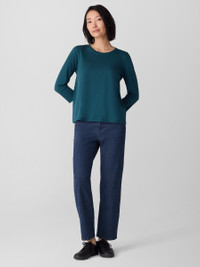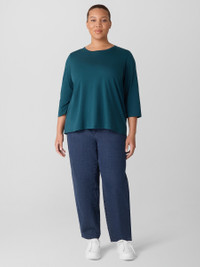 The round neck tee. An elevated basic, now with 3/4 sleeves. Made from soft organic Pima cotton that's grown using regenerative farming methods. Style No. F5KRS-T6387 DESIGN - Close at the shoulder, wider at the hem. For an even easier fit, size up. - Size S measures 25 inches on the body. Size 1X measures 27 1/2 inches on the body. - Round neck, 3/4 sleeves. - Finished with banding at the neck. - Style No. F5KRS-T6387 FABRIC - A jersey knit with the smoothness and luster that come from a luxurious fiber—extra-long staple organic cotton. Now grown using regenerative farming methods that focus on soil health and biodiversity. Grown, spun, dyed and knit in Peru. - Machine wash cold. Lay flat to dry. Do not dry clean. - Made in Peru. 100% Organic Cotton. SUSTAINABILITY - Organic farming supports clean water and healthy soil.