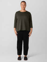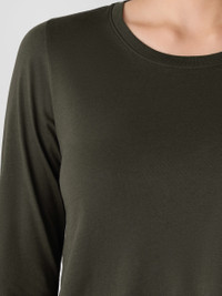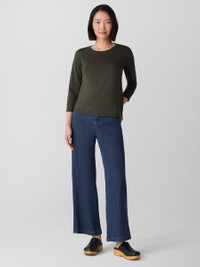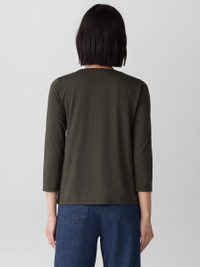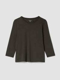The round neck tee. An elevated basic, now with 3/4 sleeves. Made from soft organic Pima cotton that's grown using regenerative farming methods. Style No. F5KRS-T6387 DESIGN - Close at the shoulder, wider at the hem. For an even easier fit, size up. - Size S measures 25 inches on the body. Size 1X measures 27 1/2 inches on the body. - Round neck, 3/4 sleeves. - Finished with banding at the neck. - Style No. F5KRS-T6387 FABRIC - A jersey knit with the smoothness and luster that come from a luxurious fiber—extra-long staple organic cotton. Now grown using regenerative farming methods that focus on soil health and biodiversity. Grown, spun, dyed and knit in Peru. - Machine wash cold. Lay flat to dry. Do not dry clean. - Made in Peru. 100% Organic Cotton. SUSTAINABILITY - Organic farming supports clean water and healthy soil.