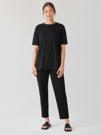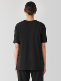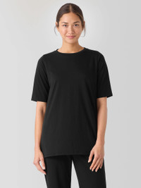 A new take on a wardrobe essential. The crew neck T-shirt updated with elbow sleeves and dramatic side slits for movement. In Organic Pima Cotton Jersey that's now grown using regenerative farming methods. Style No. S5KRS-T6171 DESIGN - Close at the shoulders, wider at the hem. A silhouette that fits the body with ease. - Size XS measures 29 inches on the body. Size 1X measures 32 inches on the body. - Crew neck, elbow sleeves. - 9-inch side slits. - Finished with banding at the neck. - Style No. S5KRS-T6171 FABRIC - A jersey knit with the smoothness and luster that come from a luxurious fiber—extra-long staple organic cotton. Now grown using regenerative farming methods that focus on soil health and biodiversity. Grown, spun, dyed and knit in Peru. - Machine wash cold. Lay flat to dry. Do not dry clean. - Made in Peru. 100% Organic Cotton. SUSTAINABILITY - Organic farming supports clean water and healthy soil.