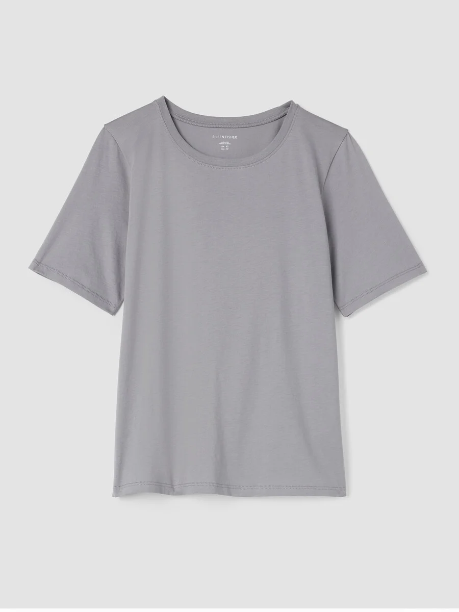 Our not-so-basic basic—the round neck tee. Made from organic Pima cotton that's grown using regenerative farming methods. Style No. F5KRS-T6172 DESIGN - Fits close to the body. Our slim fit is easier than the industry standard—withstretch for maximum comfort. - Size S measures 25 inches on the body. Size 1X measures 27 1/2 inches on thebody. - Round neck, short sleeves. - Finished with banding at the neck. - This style was designed for every body. It's Good for Petites, which means theproportions will fit and flatter customers 5'4" and under. - Style No. F5KRS-T6172 FABRIC - A jersey knit with the smoothness and luster that come from a luxuriousfiber—extra-long staple organic cotton. Now grown using regenerative farmingmethods that focus on soil health and biodiversity. Grown, spun, dyed and knitin Peru. - Machine wash cold. Lay flat to dry. Do not dry clean. - Made in Peru. 100% Organic Cotton. SUSTAINABILITY - Organic farming supports clean water and healthy soil.