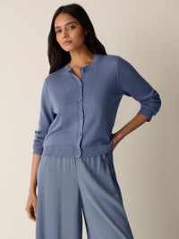 The cardigan—a versatile layering piece you'll reach for over and over. Designed with a crew neck and button front, in a cozy blend of Tencel™ Lyocell and cotton. Style No. S6RIT-K4809 DESIGN - Close at the shoulders, wider at the hem. A silhouette that fits the body withease. - Martyna is 5'9" and wears a size S in Ink, which measures 21 inches on the body.Ryan is 5'8" and wears a size 1X, which measures 24 inches on the body. - Crew neck, button front. - Finished with ribbed trim at the cuffs and hem. - Style No. S6RIT-K4809 FABRIC - Soft cotton spun with Tencel™ Lyocell for subtle sheen. We use fiber that'sgrown using regenerative farming methods that support soil health andbiodiversity. - Hand wash cold. Reshape and lay flat to dry. May snag in jewelry. - May snag on jewelry. Wear with care. - Made in Peru. 55% Organic Cotton/45% Tencel™ Lyocell. SUSTAINABILITY - Local cotton that's knit in Fair Trade Certified™ factories in Arequipa, Peru. - Fair trade knitting means higher wages and investments in local communities. - Tencel™ Lyocell fiber is made from responsibly harvested trees.