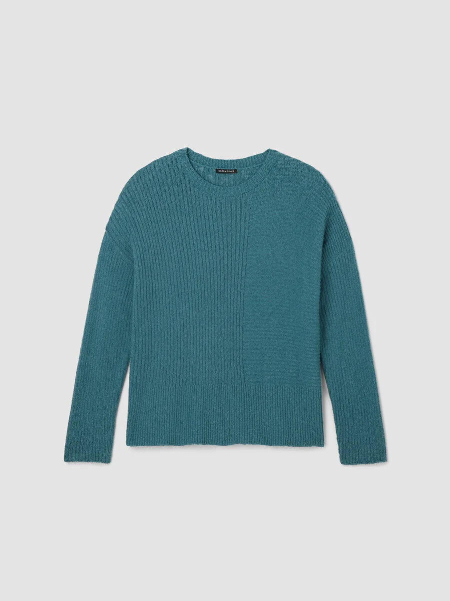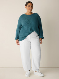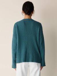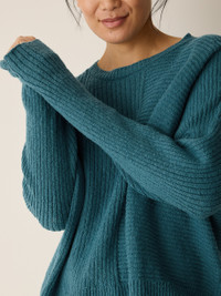 A simple silhouette transformed by soft rows of texture. Cozy and dimensional, in a blend of organic cotton and recycled nylon. Style No. S6VPT-W6273 DESIGN - A generous, boxy fit that drapes away from the body to create movement. - Select colors may vary by store. - Astrid is 5'9" and wears a size S in Eucalyptus, which measures 23 inches on thebody. Size 1X measures 25 1/2 inches on the body. - Crew neck, drop shoulder. - Style No. S6VPT-W6273 FABRIC - Soft and fluffy, a cozy blend of organic cotton and recycled nylon spun tocreate a two-tone yarn. - Hand wash cold. Reshape and lay flat to dry. May snag on jewelry. - Made in Peru. 83% Organic Cotton/17% Recycled Nylon. SUSTAINABILITY - Organic farming supports clean water and healthy soil. - Local cotton that's knit in Fair Trade Certified™ factories in Arequipa, Peru. - Fair trade knitting means higher wages and investments in local communities.