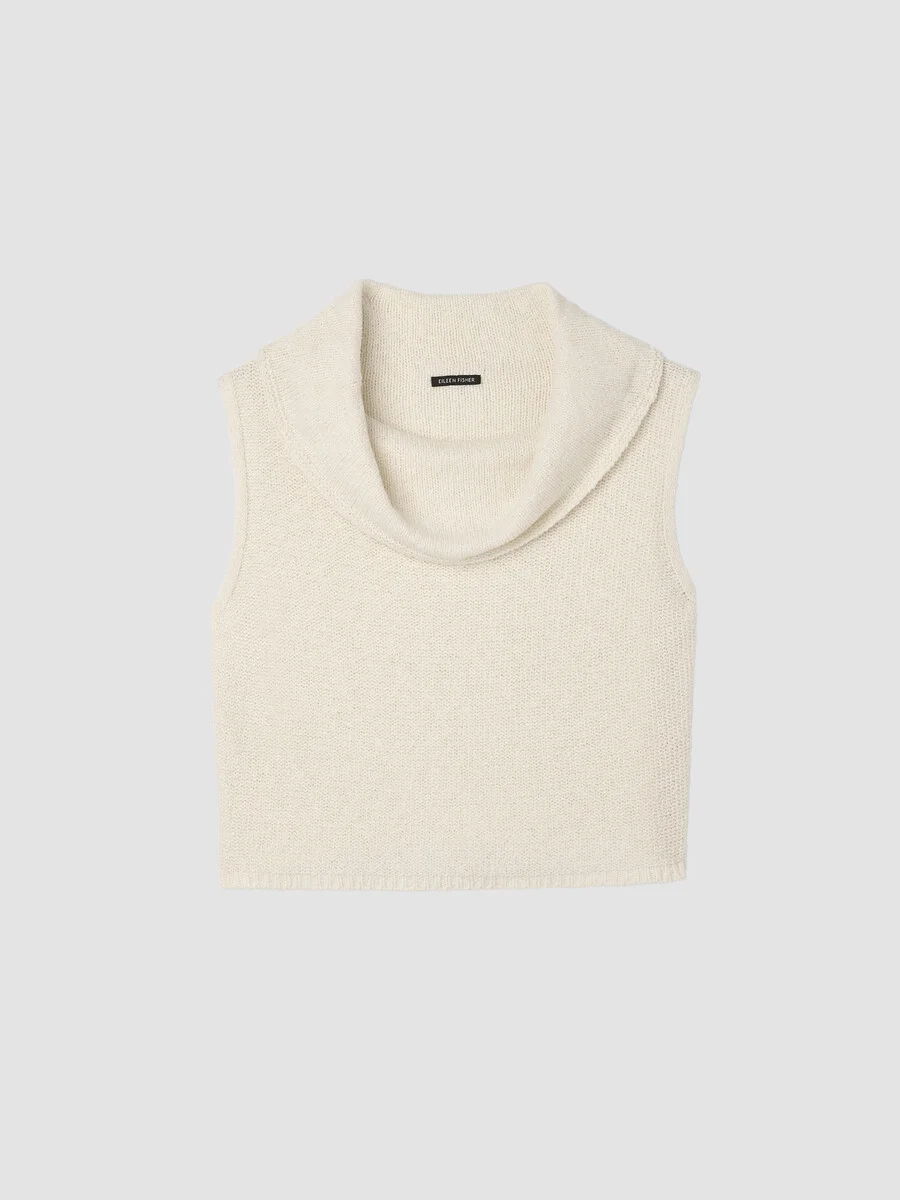 A piece that redefines cozy. An elevated vest you can wear multiple ways, in a fluffy blend of organic cotton and recycled nylon. Made in a Fair Trade Certified™ factory. Style No. S6VPD-V1360 DESIGN - A generous, boxy fit that drapes away from the body to create movement. - Only available at select EILEEN FISHER stores. - Astrid is 5'9" and wears a size S in Black, which measures 22 inches on the body. Size 1X measures 24 1/2 inches on the body. - Drape neck, cap sleeves. - Style No. S6VPD-V1360 FABRIC - Soft and fluffy, a cozy blend of organic cotton and recycled nylon spun to create a two-tone yarn. - Hand wash cold. Reshape and lay flat to dry. May snag on jewelry. - Made in Peru. 83% Organic Cotton/17% Recycled Nylon. SUSTAINABILITY - Our Fair Trade Certified™ factories meet rigorous social and environmental standards. By choosing Fair Trade Certified™ products, you’re helping to improve the lives of workers, build resilient communities and protect the environment. - Local cotton that's knit in Fair Trade Certified™ factories in Arequipa, Peru. - Organic farming supports clean water and healthy soil.